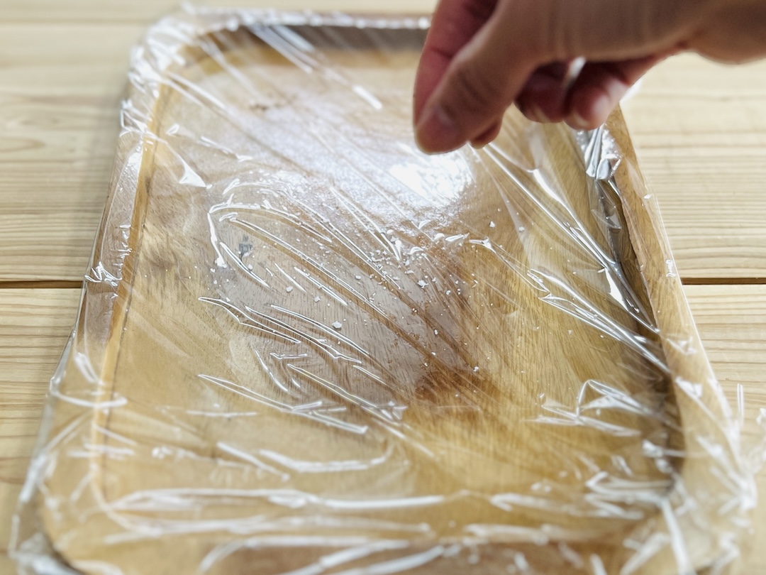 手前から奥へ、ラップごとパタンと半分に畳みます。