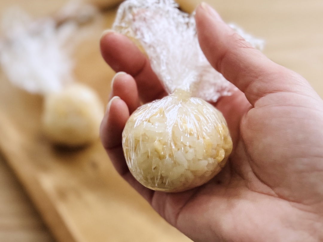 私は朝食を食べないので、ごはんが余ったら小さく丸めて「赤ちゃんおにぎり」に。